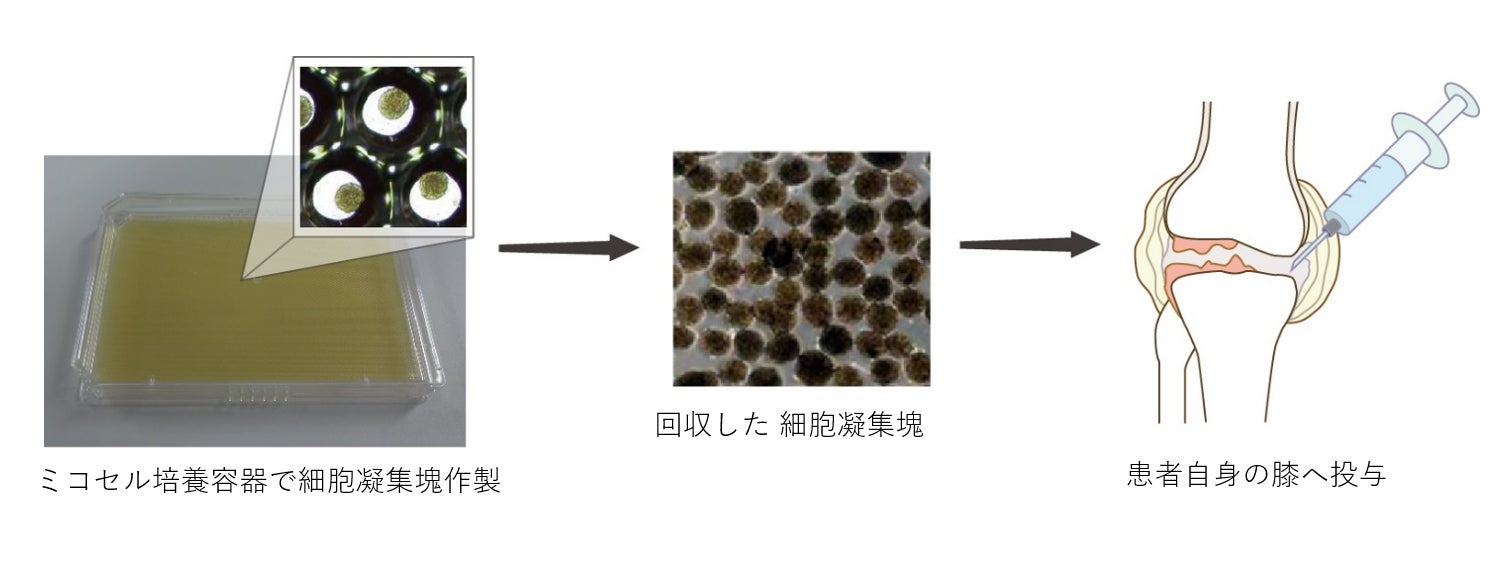 ミコセルは粒子径が揃い生体内での状態に近い細胞凝集塊を多量に作製できるのが特徴。ミコセルを用いたヒト脂肪由来幹細胞凝集塊の変形性膝関節症に対する安全性、および有効性のデータ取得を目的として臨床研究を実現するために、そばじまクリニックと共同研究を実施してきた。計5名の被験者へ投与した結果、細胞凝集塊の安全性を確認したとしている。
